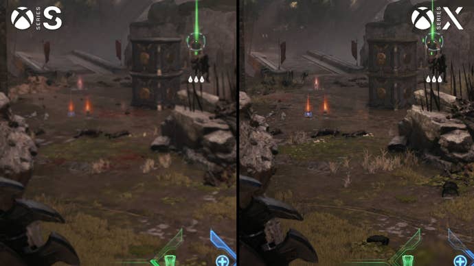 I don’t think anyone was particularly expecting a bad experience on Series X but the much weaker Series S is much more of a concern. It’s mostly a similar enough experience – just a very soft one. Series S peaks at about 864p, again with VRS in use, with dips to about 648p in heavier scenes. Expect a blurrier image with a smeared appearance on fine geometry and textures. At close range, fidelity on a 4K panel can look pretty rough, and image stability is decreased as well. The UI is also of a lower resolution. Other differences stem from visual settings tweaks. Foliage density is reduced, for instance, especially at a distance. The game’s textures and materials see some light tweaks as well, though any concessions here are minor up close.