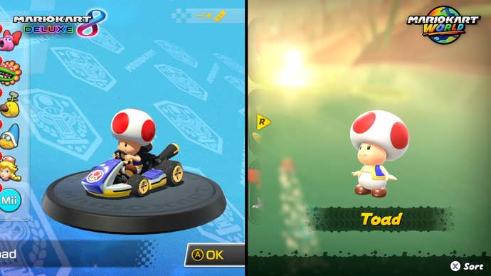 I think Nintendo ran into a big issue when they sketched out the concept for World. Mario Kart 8 was such a tight, perfectly tuned game, had already explored transforming vehicles, and came loaded with content. It’s a very hard game to top on its own terms. With World, Nintendo hasn’t really tried to, instead veering off in a very different direction in gameplay terms – even beyond the obvious shifts to scope. The changes are numerous: tracks are wider, handling is a little looser and mini-turbos charge more slowly, items have been tweaked, automatically trail the player, and have generally been made less punishing, gliders have been replaced with wings, watercraft have been introduced, it’s possible to trick off the ground, and there are new rail grinding and wall riding mechanics.