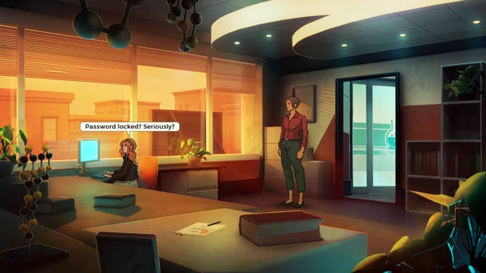 At its most basic, Old Skies follows the point-and-click genre’s familiar rhythms of kleptomaniacal object acquisition and incessant NPC bothering to propel players through its tale. But Wadjet Eye uses its well-honed design instincts to streamline the experience (the roll-over ‘look at’ descriptions are a nicely efficient touch) then build out from there, introducing elements of clue-gathering, cross-referencing, and reasoning that provide an unexpectedly strong investigatory focus. You’ll pick locks, converse with characters, mooch through emails, crack codes, and amass useful objects to uncover new leads. And at the centre of it all is the Historical Archive; a grand database of literally everything that ever was or ever will be.