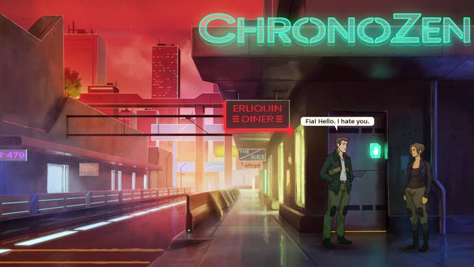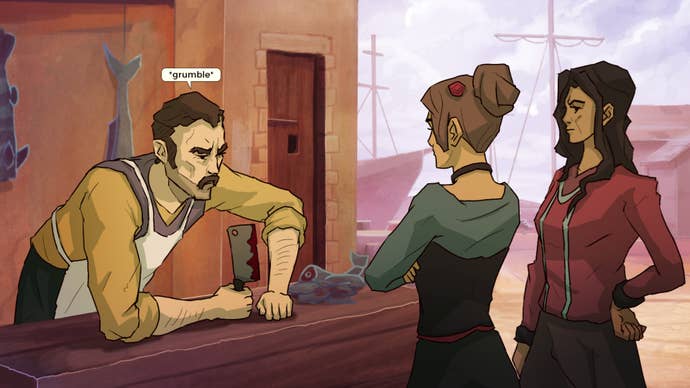 Where things start to come a little undone, though, is Old Skies’ big time loop set pieces. Fia and her clients are essentially time locked while travelling, meaning fatalities are easily reversed by ChronoZen HQ. And with death no longer a hindrance, Wadjet Eye positively delights in peril, intermittently bringing Fia’s adventures to an end in a spray of bullets or with a well-hurled meat cleaver. Conceptually, these crescendo moments are lovely stuff, building puzzles around foreknowledge gained after the fact in classic time travel fashion. By observing, interacting, and exhausting dialogue options before Fia’s demise, players can gain new knowledge to exploit on their next loop around, perhaps finding a hiding spot or laying a trap where the killer will tread. It almost works, but Wadjet Eye struggles to offset the inherent tension-sapping repetition of these trial-and-error sequences, and aside from a smartly structured closing effort – one of the few with sensible checkpointing – they can feel a bit of a chore. Thankfully, these moments are relatively sporadic, and only a minor blemish on an otherwise strong game.