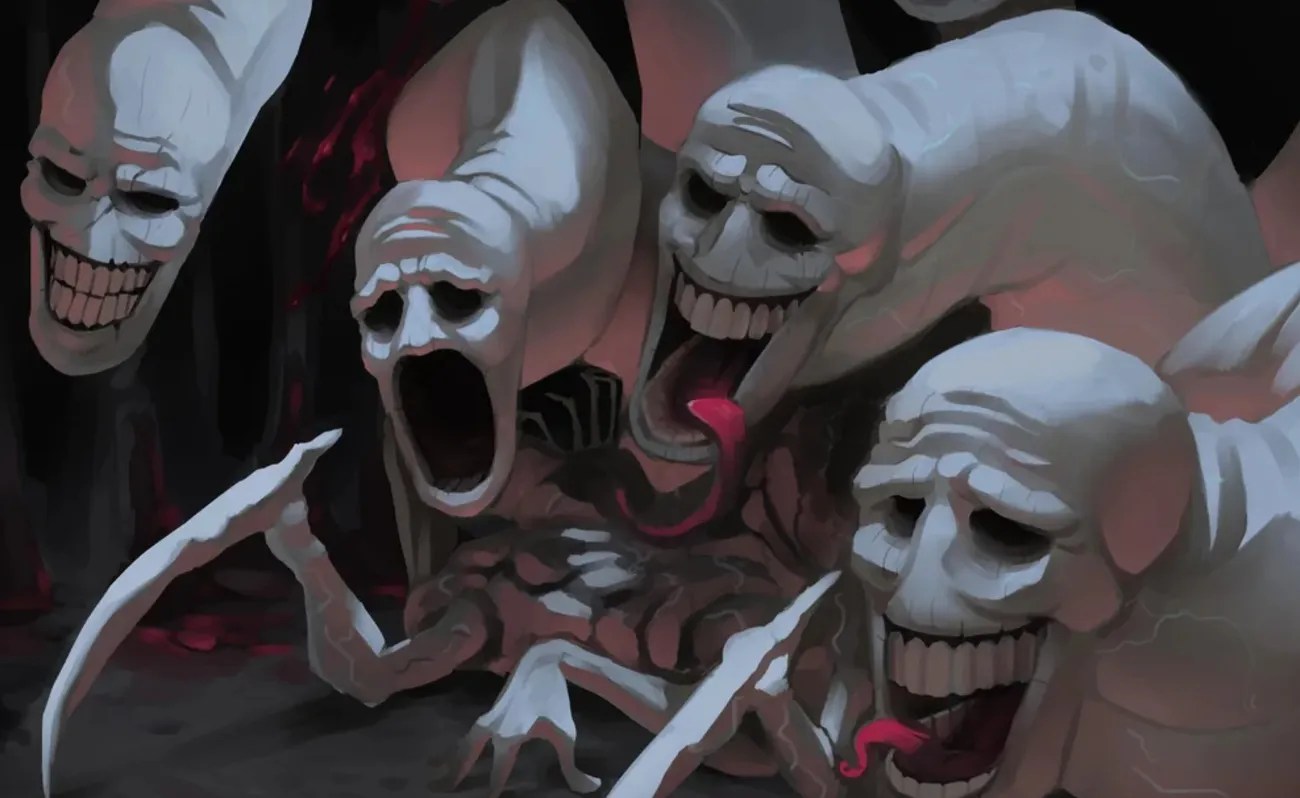 What makes it so compelling? No one knows it’s there. The False Hydra’s song generates an inattentional blindness effect: Every creature who hears it (usually in a five-mile radius) fails to perceive the monster, even if it’s right in front of them, ready to feast. Moreover, this twisted protection system extends to the victims of the False Hydra. Any creature devoured by the beast will be forgotten, erased from the memory of the songs’ victims. Add to this a creepy aesthetic inspired by the most disturbing creature in The Legend of Zelda: Ocarina of Time, and the False Hydra’s habit of infiltrating quiet, remote villages, and you’ve got all the elements for a great horror adventure — something that’s not easy to pull off in D&D’s high-power fantasy context.